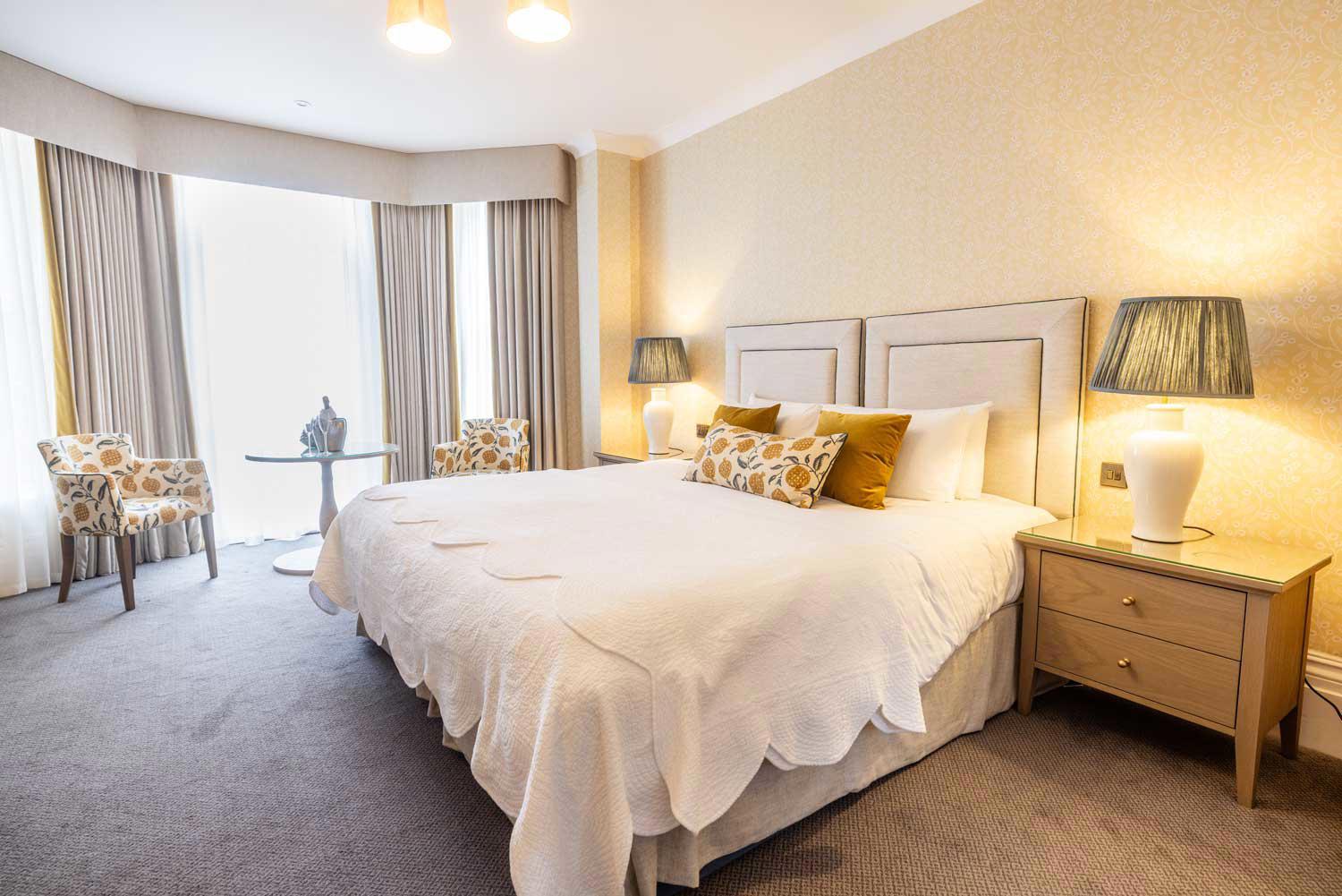 Beautiful, spacious rooms with an average living space of 210 sq ft. These bedrooms have been tastefully designed and furnished and have either a bath or power shower room with bathrobes and slippers. The rooms are double glazed and are equipped with a 5’ king size bed, flat screen TV with over 100 Freeview TV and radio channels and an i-Pod docking station.